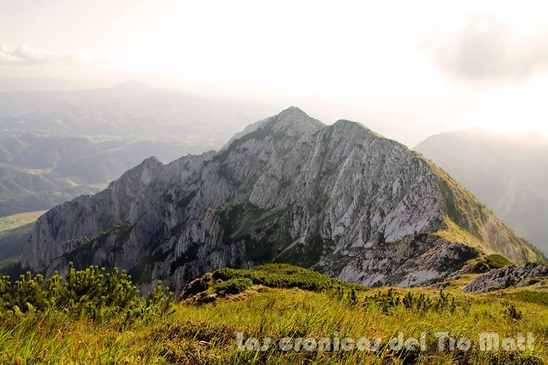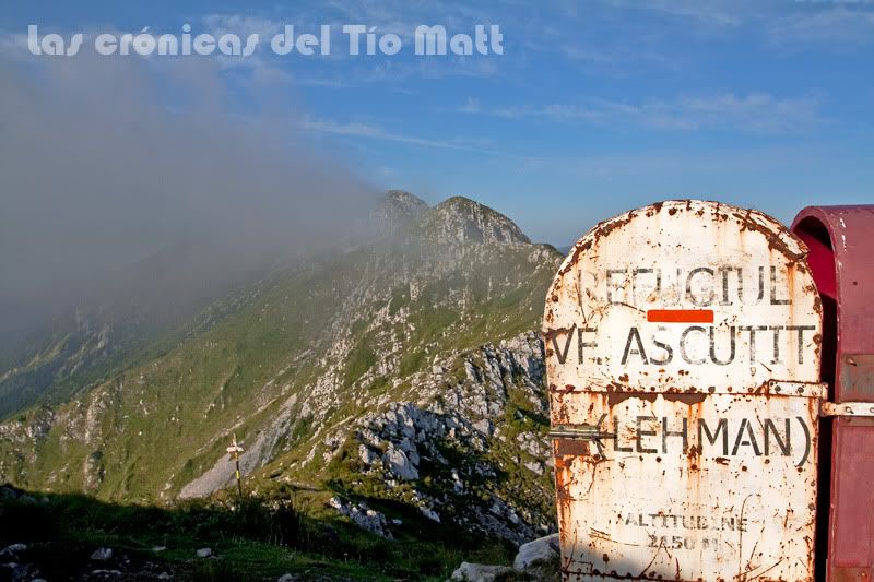 No son mucho más de las seis de la mañana cuando los primeros rayos de sol comienzan a colarse por las pequeñas ventanas del refugio. Ha cesado el viento que tan ferozmente estuvo soplando durante las horas nocturnas y el día aparenta presentarse sereno y caluroso. Desde lo alto de la montaña la vista es espléndida. La absorbo con fruición, disfrutando de una extraordinaria nitidez de visión. De vez en cuando, restos de niebla de ladera ocultan la vasta cresta que tengo que recorrer, dándole un aspecto más inhóspito, si cabe. Preparo un desayuno con el poco alimento que me queda del día anterior y disfruto del frescor del aire puro matutino.