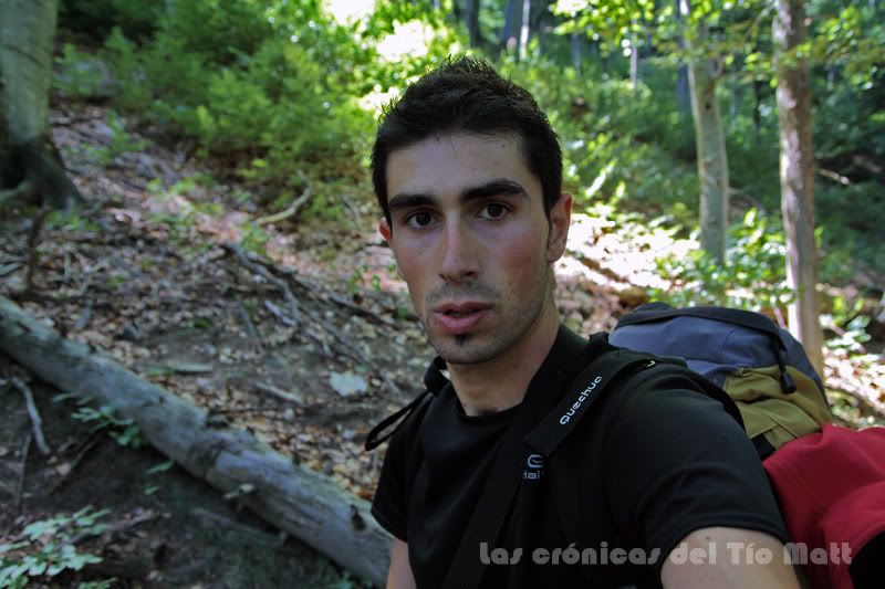 Me desoriento. Son las 13h cuando me doy cuenta de que me encuentro en tierra de nadie, con objeto de evitar rodar pendiente abajo, agarrado como puedo a las ramas de un pequeño árbol que trata de abrirse paso entre sus hermanos mayores en busca de los rayos de sol. Por un momento, la frustración me invade. Con los restos de lo que fuera una gran rama intento excavar un llano donde poder descansar mínimamente en la cansada pendiente. Tomo aire y medito. Finalmente opto por continuar la ascensión bosque a través con la esperanza de que en algún momento logre cruzarme con la senda que me lleve a Curmatura. Desde luego, pasar la noche desorientado en aquel bosque atestado de osos no es mi mejor opción y descender, si bien podría llevarme a la pista de partida, también podría hacerme acabar en algún lugar del fondo del valle completamente aislado.
