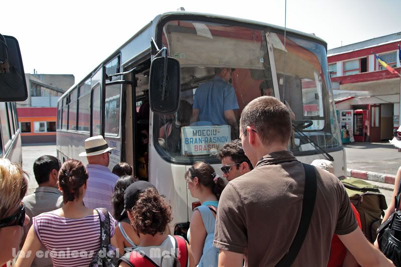 Una vez en la estación y tras preguntar a no pocos rumanos como coger el autobús que me lleve a la cercana localidad de Bran, cual es mi sorpresa cuando me he enterado de la existencia de una segunda parada de autobuses "comarcales", que como no podía ser de otra forma, se tenía que encontrar en la otra punta de la ciudad. Así que con paciencia, tiempo, quince kilos de peso a la espalda y un par de litros perdidos en forma de sudor bajo el abrasador sol del estío rumano, he recorrido los aproximadamente tres kilómetros que separan ambas estaciones no sin pocos regañadientes.