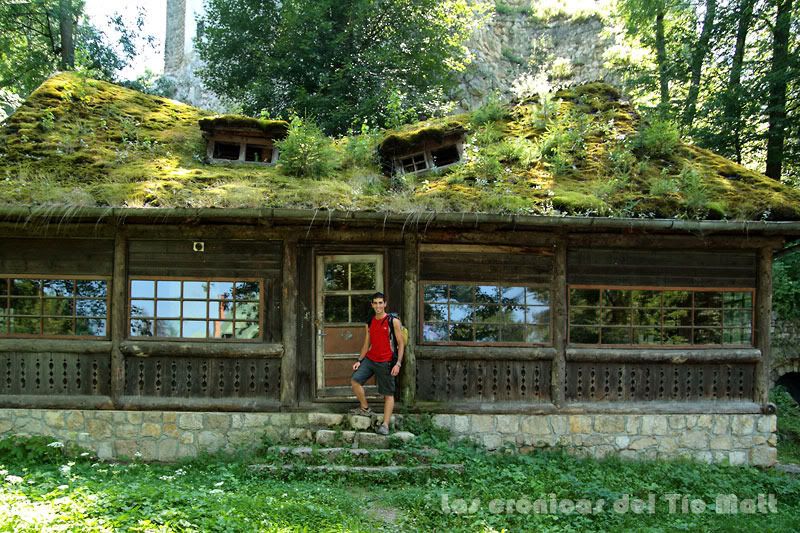 Las horas posteriores a la visita al castillo han resultado ser una fenomenal experiencia en compañía de Sara y Shopie. Las dos jóvenes inglesas son estudiantes universitarias y están realizando un viaje que las lleva a recorrer toda Europa mediante en billete mensual de Interrail. Ambas conocen algo del idioma español lo cual facilita enormemente la tarea de comunicación entre nosotros así que charlamos y filosofamos de los más variados temas entre los que gran parte del tiempo se lo lleva el debate del por qué los ingleses funcionan al revés del resto del mundo con sus yardas, pulgadas y conducción por la izquierda, donde cada uno expone sus argumentos de defensa (lo siento Sara, no me has convencido). Hacemos de profesor nativo el uno del otro y las comento que son las primeras inglesas que conozco que intentan aprender otro idioma que no sea el suyo. Caminamos por los alrededores del castillo donde nos encontramos con una enigmática cabaña de madera, de grandes ventanales y curiosa cubierta de extrañas formas, forrada por abundante vegetación que le da al conjunto ese aire propio de los cuentos que nuestros abuelos nos contaban cuando éramos pequeños. ¿Será esta la casita de chocolate? ¿Estarán allí dentro Hansel y Gretel?