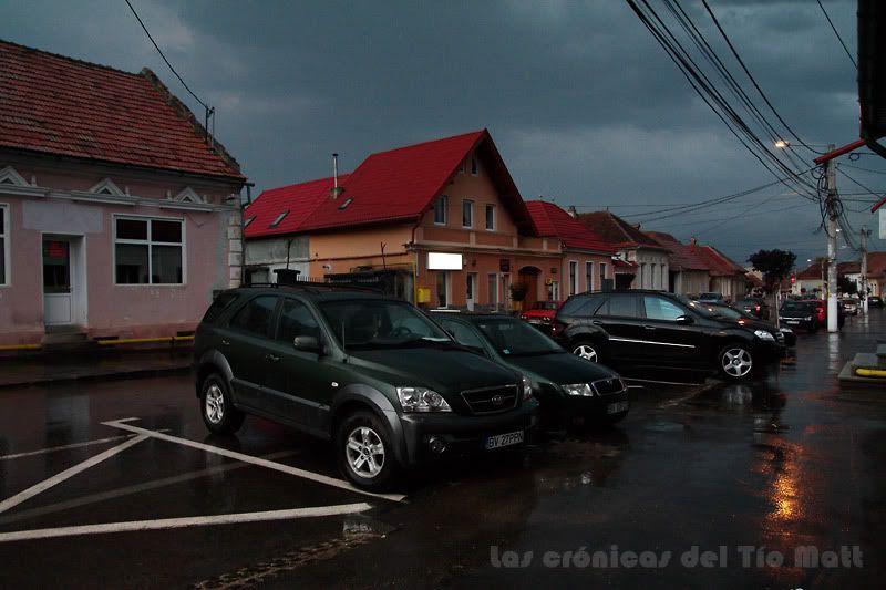 A mi llegada a Zarnesti me encuentro la soledad de un pueblo rural cuando azota la tormenta. A pesar de ello estoy contento, cubro mi mochila con su impermeable y camino bajo la lluvia buscando alojamiento para pasar la noche. De camino me encuentro un cibercafe dónde poder conectarme a internet al que no dudo en acceder. Localizo varios alojamientos en la zona, anoto su dirección y teléfonos y aprovecho para contestar a algunos emails que tenía pendientes: