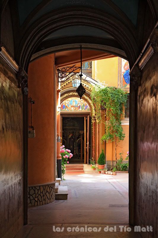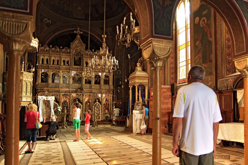 Recorro pues, en la mañana luminosa, la gran plaza que es el centro de la parte antigua de Brasov, dirección a la Catedral ortodoxa, a la que accedo a través de un estrecho pasillo que me conduce a un patio interior, donde se haya la verdadera iglesia. Una joven rumana enciende una vela en recuerdo de sus seres queridos me imagino. He intentado indagar el significado de las velas pero, hasta el momento, nadie me lo ha conseguido explicar. Al acceder al interior he quedado fascinado. Ha sido la primera vez que veía una iglesia ortodoxa y, como toda cajita de joyas que se precie, su interior, completamente cubierto con coloridos frescos tan característicos de este tipo iglesias, ha resultado ser una gran obra de arte para mis dilatadas pupilas, obligándome a retroceder en el tiempo e imaginarme a aquellos esforzados y mañosos artistas trabajar sus bóvedas.
