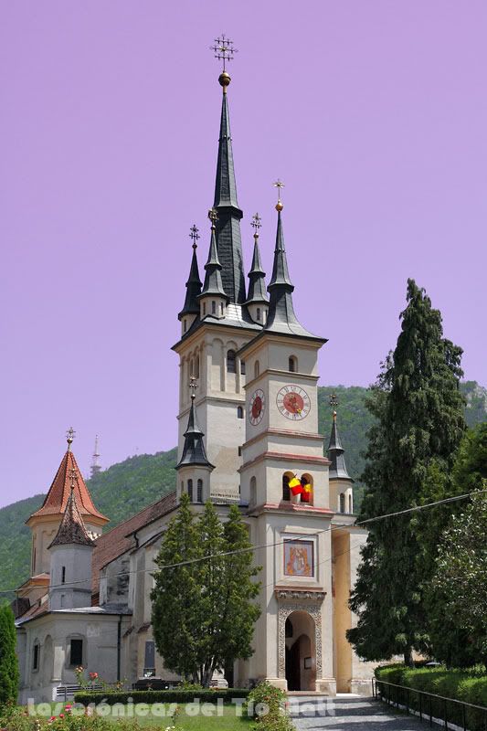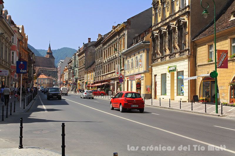 Con razón consideran los rumanos a Brasov una de las ciudades más bonitas del país. Su recogido casco urbano alberga numerosas edificaciones de tiempos bélicos pasados, edificios de estilos góticos, barrocos y renacentistas, y la mayor iglesia de toda Rumanía: la Biserica Neagra (Iglesia Negra), que debe su nombre al color que adquirió tras un incendio sufrido en 1689 pero que tras una reciente restauración ha perdido casi por completo. La visita supone un coste de 2 leis, así que tras pagar mi tributo accedo a ver sus entrañas, que me decepcionan bastante y donde lo más llamativo para el turista, y cito textual lo que dice mi guía, "es una valiosa colección de alfombras turcas que los comerciantes locales donaron durante los siglos XVII y XVIII gracias al lucrativo comercio que mantenían con los países asiáticos". Para mi en cambio, ha resultado más interesante ver las marcas de proyectiles que hay en su lado izquierdo, las cuales perforaron la puerta y alcanzaron varias de las columnas durante la revolución de diciembre de 1989. Eso si que resulta interesante.