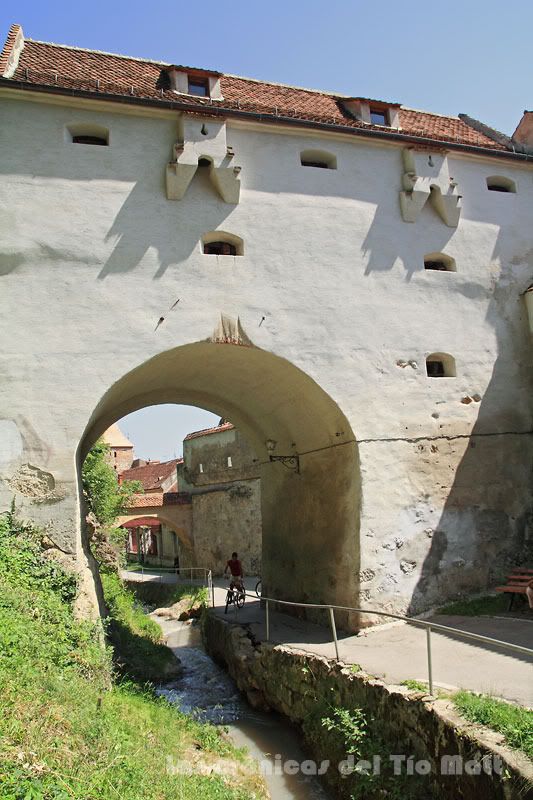 Prosigo mi andadura en dirección a Strada Dupa Ziduri, una angosta calle peatonal que discurre paralela a la antigua muralla que servía de protección a la ciudad vieja por su parte Sur frente a un hipotético ataque turco. Me voy fijando en la numerosa suciedad que transporta un pequeño riachuelo que circula junto a ella mientras atravieso varios de los conocidos monumentos históricos de la antigua defensa de Brasov: Bastionul Graft (Bastión Graft), Turnur Alba (Torre Blanca) y Turnur Neagru (Torre Negra).